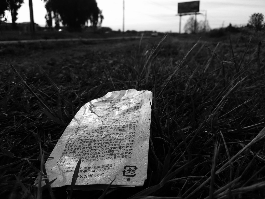 On a long walk I happened to discover this little piece of litter as I was closing in on my destination. It was interesting piece of litter to me as it features Japanese and stands out in the grass. It’s a simple shot featuring a normally ignored subject. It is something that I wanted to create and did so after a few shots.