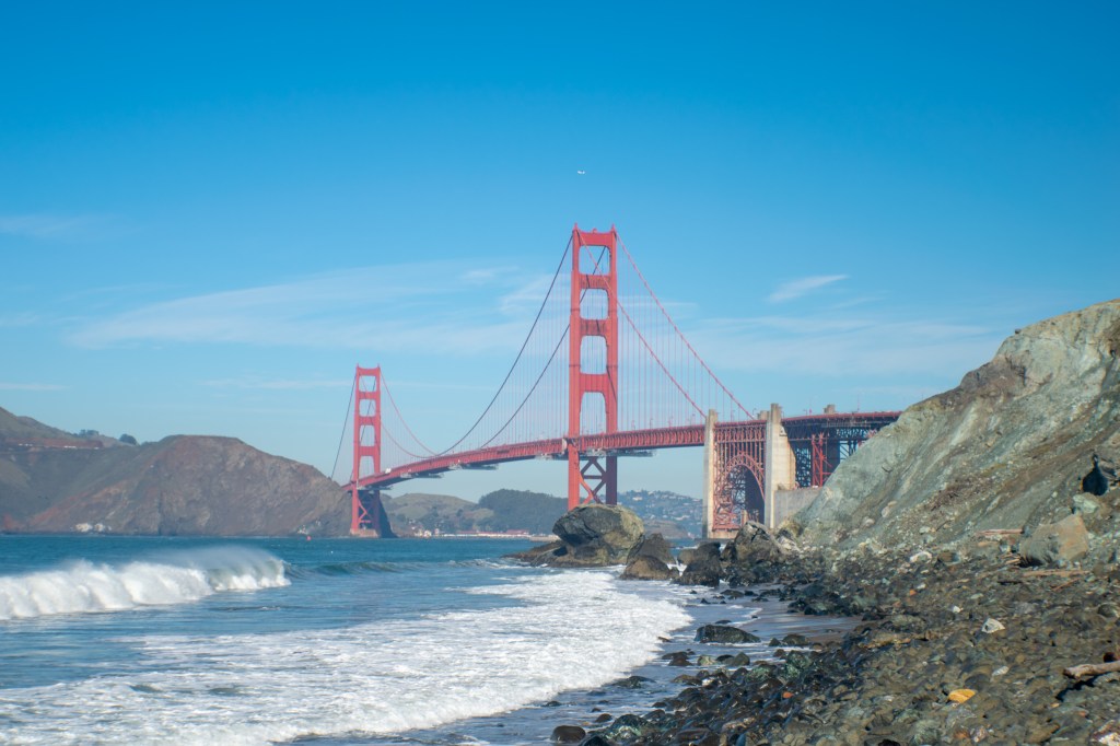A shot that I slightly edited and left colored. Kind of wish that the color of the bridge was more vibrant. However, I do enjoy how the water turned out. I approve of this photo but I can see what I can improve on. I experimented heavily with not having the bridge front line and center in the photograph which I did accomplish. For me, nothing really stands out in the photo besides the waves.