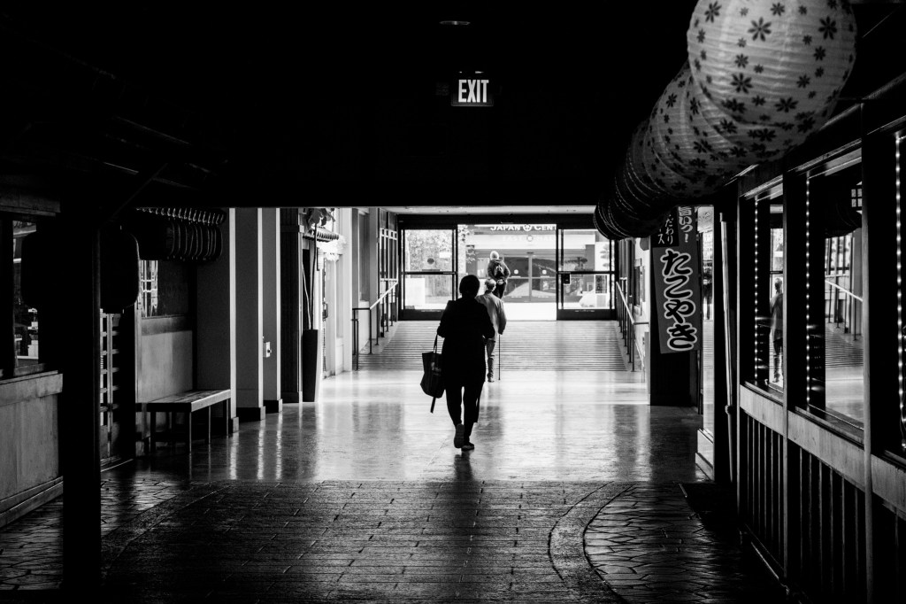 Stood there long enough for an elderly woman to walk behind the old man featured in previous shots. I really enjoy these series of shots as I do have two more featuring the takoyaki man. I like the line that the people kind of form based on all of their goals. I like the goals and how things are in focus. I have a feeling that the lanterns may be distracting but they also add a little depth to the environment and also form their own line.