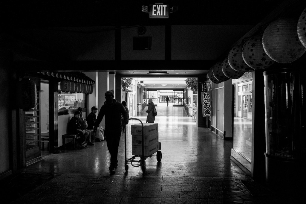 Another shot of this hall and a closer view to a man putting in some work as tourists start to gather in the Japantown mall. I feel like the shot is heavy on the left but the open space on the right of the shot balances it out. I might go back and edit this shot some more and try to work on the background. This should be the last shot I take with at this spot.